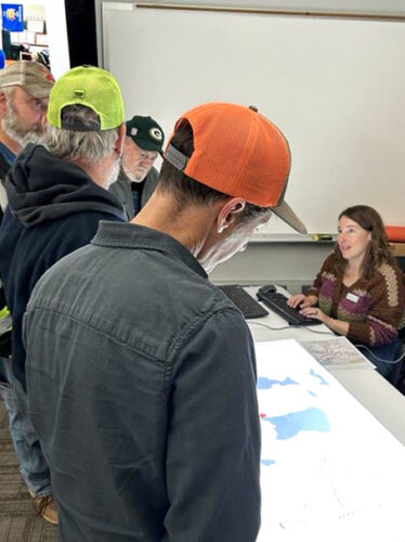 Town and county representatives gather around a tabletop mapping station being run by WWA’s Stephanie Rockwood.