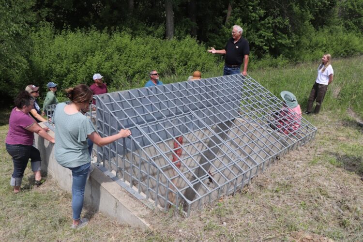 The second event brought Iowa neighbors over state lines to Wisconsin. Monroe County kicked off the line-up with a presentation of their Little La Crosse Watershed Infrastructure Resiliency Initiative, a flood vulnerability assessment project leveraging federal transportation funding to increase the resilience of roads and aquatic systems. This was followed by a fantastic evening gathering on a multi-generational farm, with a field tour the following day that took the group on a journey through the long history of agricultural, soil, and water conservation in the Coon Creek Watershed. Dams are very much a part of this story in the flood-prone region, and the field tour included visiting two PL566 dams that failed in the region’s catastrophic 2018 flood.